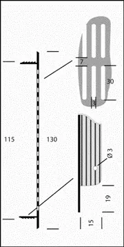 Buitenmaten rooster: Lengte 500mm, Hoogte 130mm